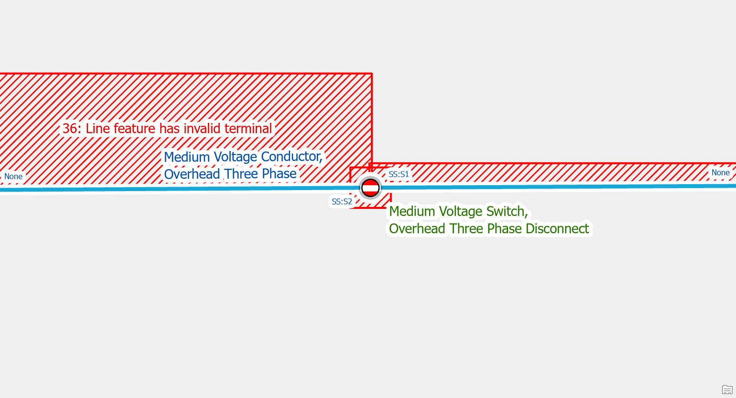 | Invalid Terminal Connections | 36: The line feature has an invalid terminal |