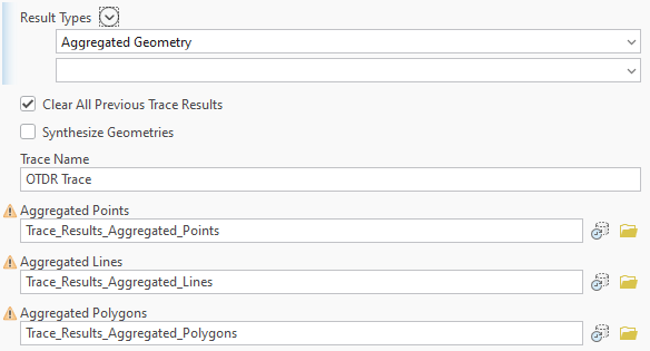 Because the trace is likely to stop in the middle of a line, we need to ensure we use the Aggregated Geometry result type. This ensures we return a geometry that represents the partial edge of the result, instead of selecting the entire feature.