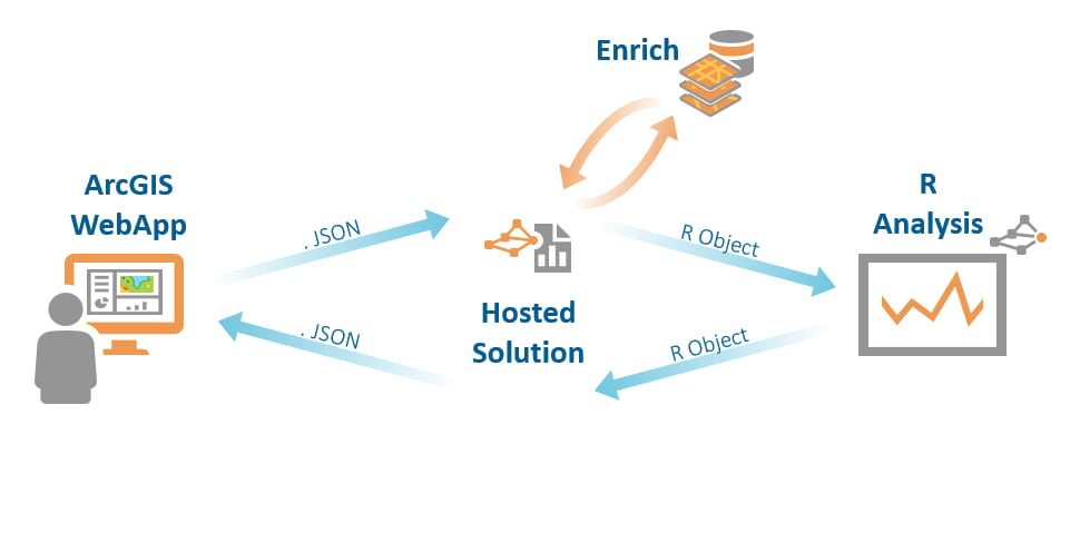 Here we present one such example of an integrated solution designed by Retail Scientifics to leverage the power of R from within the ESRI ecosystem using ESRI’s Web AppBuilder framework as a web-based front-end application. This approach allows data scientists to develop high quality technical models within R, while simultaneously allowing non-technical users to employ these models via a user-friendly, spatially-enabled interface.