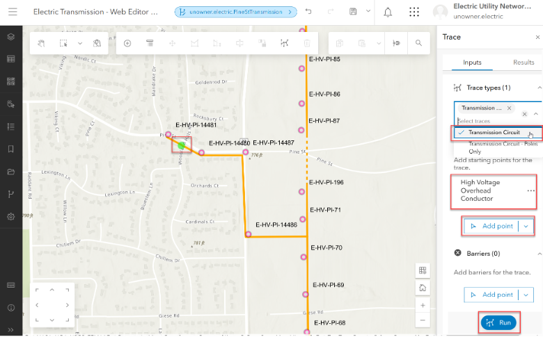 A new transmission line is being proposed which will add a new conductor, poles and attachment points between poles E-HV-PL-71 and E-HV-PL-70. We could add each asset individually using editing templates, but we can also streamline the process using the Group Template functionality that is accessed via the feature service.