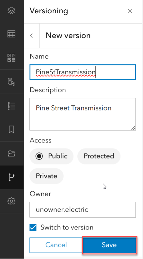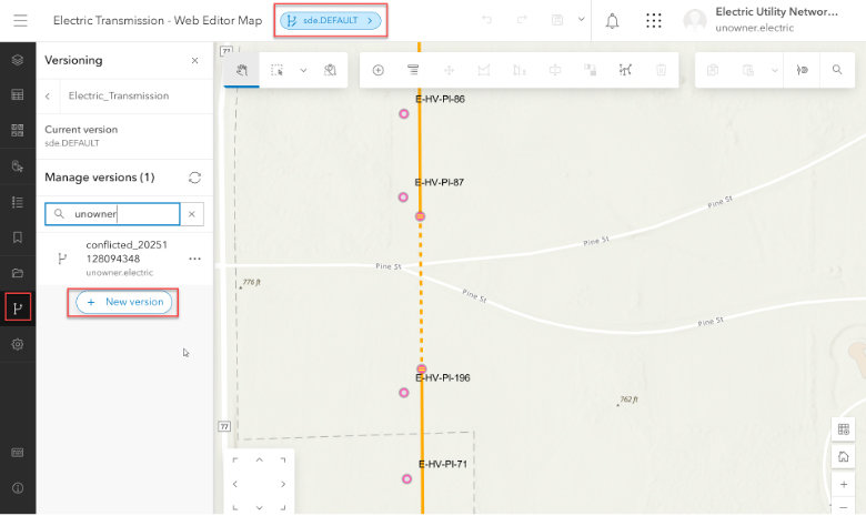 When editing a utility network in ArcGIS Web Editor you will want to create a new branch version or open an existing branch version.