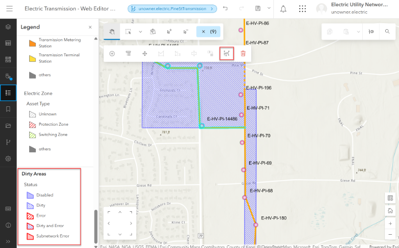 Once the new assets have been created you will see new features created called Dirty Areas. To complete our editing, we will need to validate the dirty areas to ensure that it adheres to the network rules of the utility network.