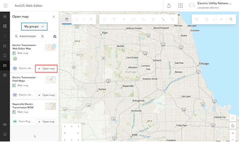 To begin, we will open our web map that includes a utility network feature service in ArcGIS Web Editor in our Enterprise Portal.