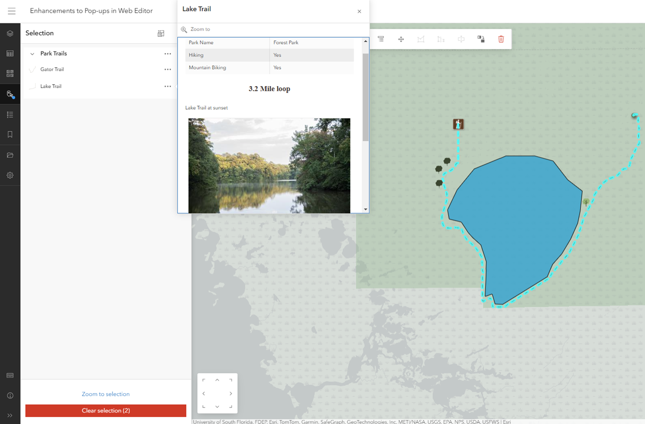 The November 2024 update has introduced minor enhancements to support a more seamless pop-up viewing experience in Web Editor. Pop-ups are now a larger size in Web Editor and include the “Zoom to” button, allowing you to quickly find and view the associated feature.