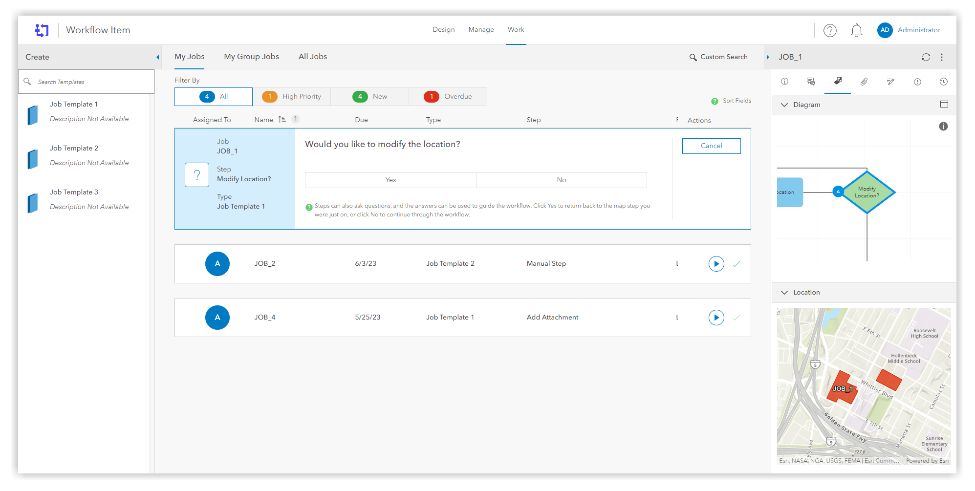 - Associate jobs with a geographic location to visualize jobs on a map and define where work needs to be completed.