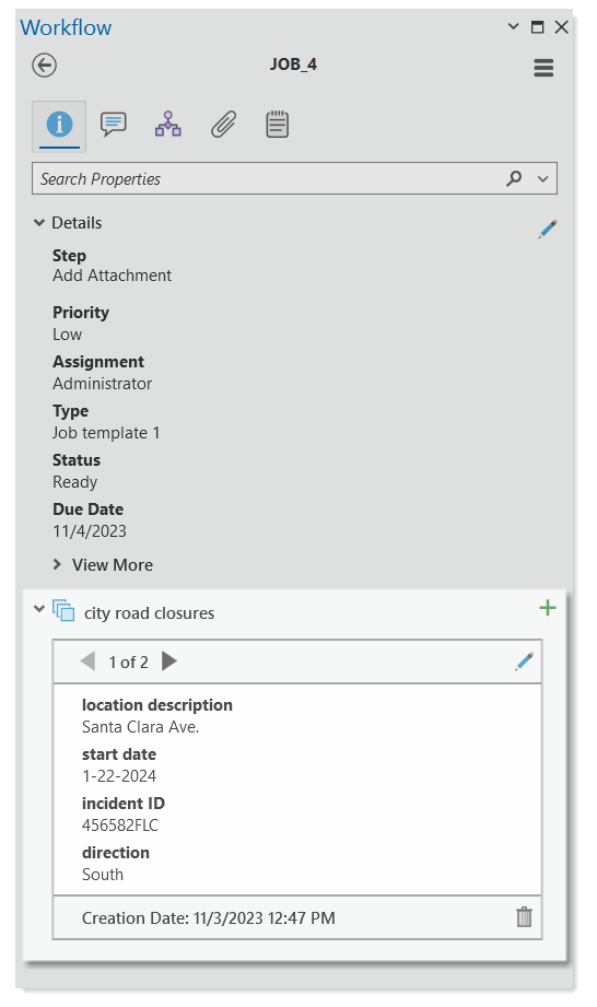 The Notes tab is a new addition to the workflow pane in ArcGIS Pro that allows you to review, edit, and add informal information to jobs. The Notes tab is privilege controlled to allow workflow administrators to manage which members can view and edit notes.