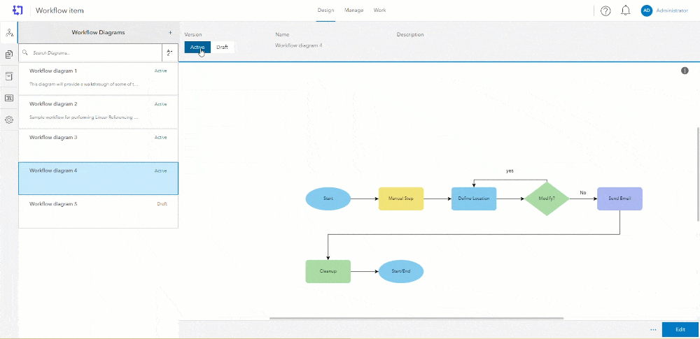 The Diagrams tab now offers drafting capabilities for your workflow diagrams. When changes are made, you can save edits in a draft, compare changes between the active and draft versions, or discard the draft. Draft workflow diagrams allow you to edit, update, and re-configure a diagram without affecting existing jobs.