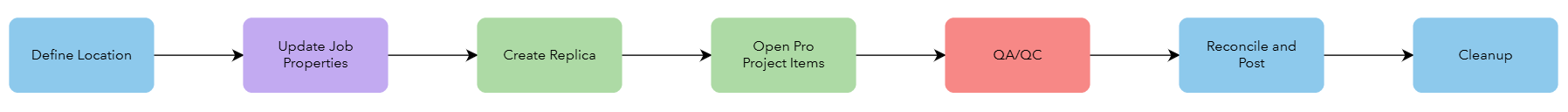 Finally, after edits have been posted to the default version, we can allow Workflow Manager to clean up the job data using the Cleanup step. This process deletes the location associated with the job, unregisters the replica with the job, and deletes the replicated version of the data source and the mobile geodatabase stored in the shared file path.