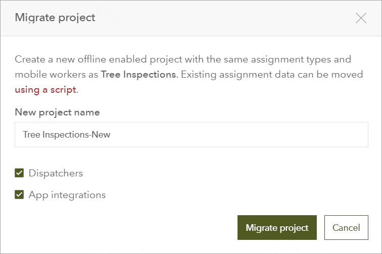 This script migrates an entire Classic project to one that is enabled for offline use. It will preserve your assignment, worker, assignment type, web map, and app integration data. You also have the option to preserve dispatcher data.