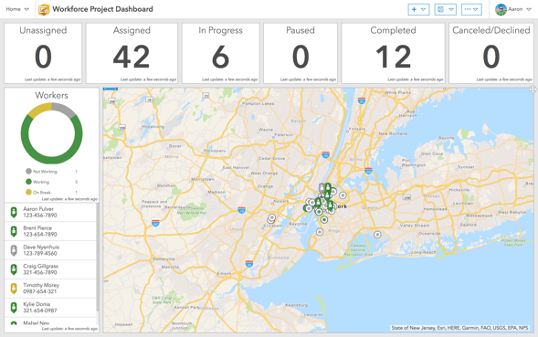 You now have a fully functioning dashboard that shows the breakdown of assignments by status, the number of workers working, and a map showing where the workers and assignments are located.