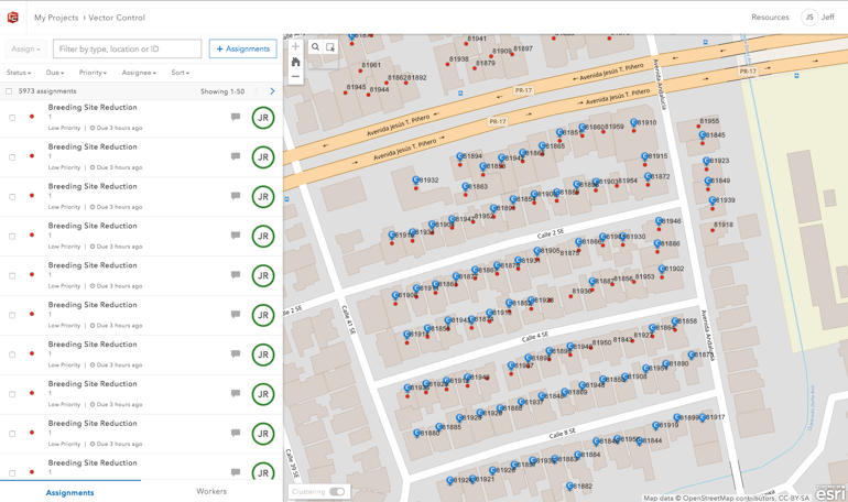 PRVCU currently have over 1,000 mosquito traps deployed and they are using Workforce for ArcGIS with ArcGIS Enterprise 10.5.1 to plan and coordinate weekly maintenance, conduct vector control, and educate residents.