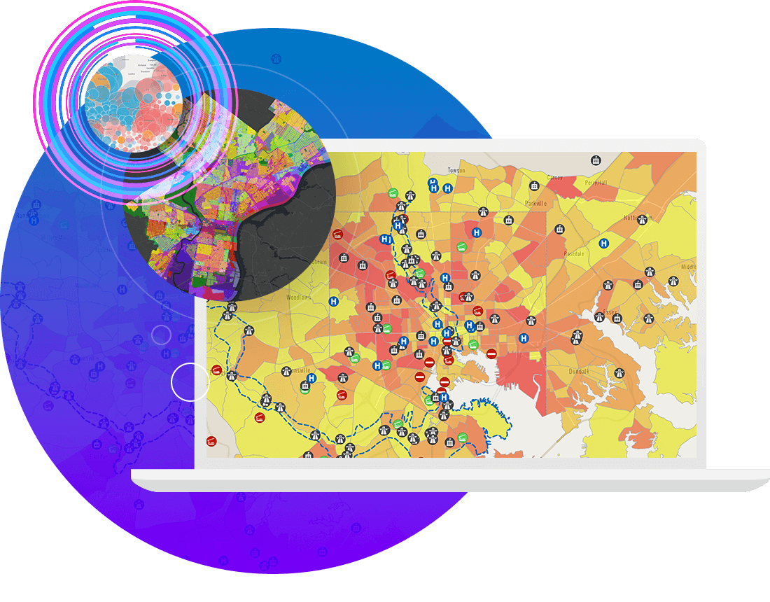 Wenn Sie Ihre Daten in eine Karte einfügen, werden diese in einen Sinnzusammenhang gebracht, es werden neue Erkenntnisse gewonnen, und das Verständnis wird vertieft. Sie können komplexe ortsbezogene Probleme lösen, Muster erkennen, Trends bewerten und Entscheidungen treffen. Gehen Sie über die Kartenerstellung hinaus, indem Sie die Eigenschaften von Standorten und eventuell vorhandene Zusammenhänge untersuchen. Entdecken Sie neue Perspektiven, die Sie bei der Entscheidungsfindung unterstützen.