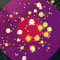 Grafik der Karte einer Gebirgskette in leuchtendem Blau und Violett vor schwarzem Hintergrund