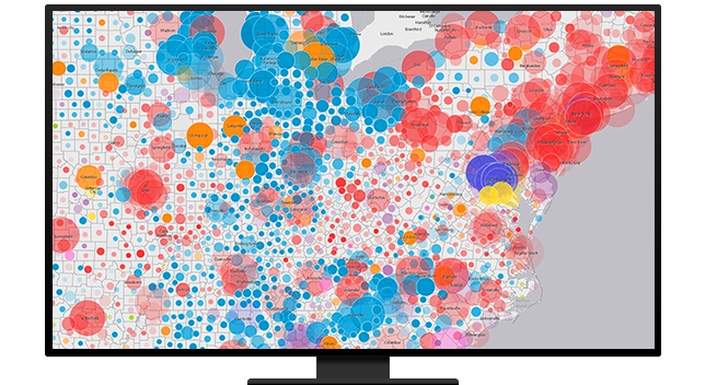 Nutzen Sie raumbezogene Erkenntnisse, um hyperlokales Kundenverhalten und überregionale Nachfrage zu ermitteln und wettbewerbsbezogene Business Intelligence bereitzustellen. Sie können wichtige Kennwerte wie Umsatzvolumen und Marktanteile in Karten darstellen, analysieren und für Vertriebsabteilungen und Agenturpartner freigeben.