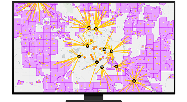 Passen Sie sich an sich verändernde und fluktuierende Vertriebsgebiete an. Mit den räumlichen Werkzeugen von Esri für Territory Design und Gebietsmanagement können Versicherungsunternehmen ihre Märkte dynamisch umzonieren, um ihre Ressourcen optimal zu nutzen und Lücken in der Abdeckung zu vermeiden.
