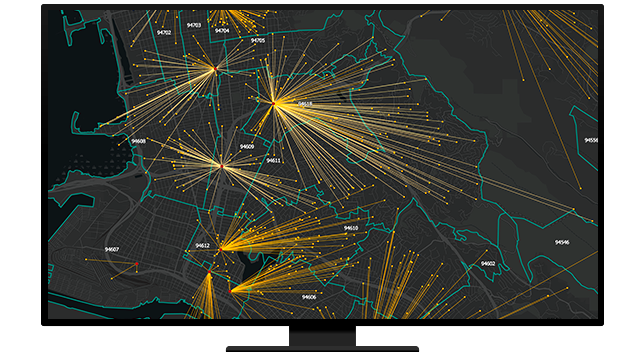 Sehen Sie sich verschiedene Anwendungsfälle für Handelsgeschäfte an. Visualisieren Sie Muster und Änderungen an bestimmten Standorten, und nutzen Sie so den Wert von Daten auf einer Karte.