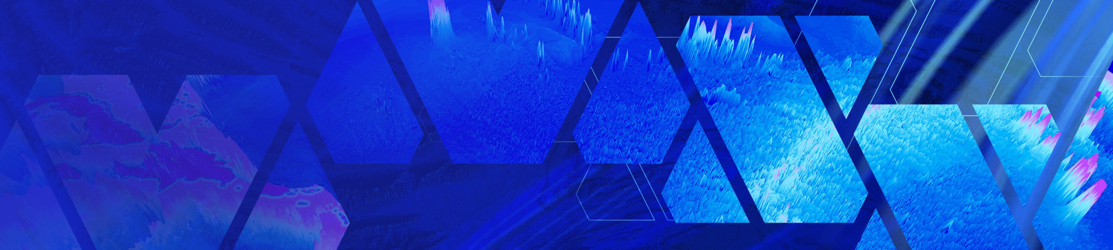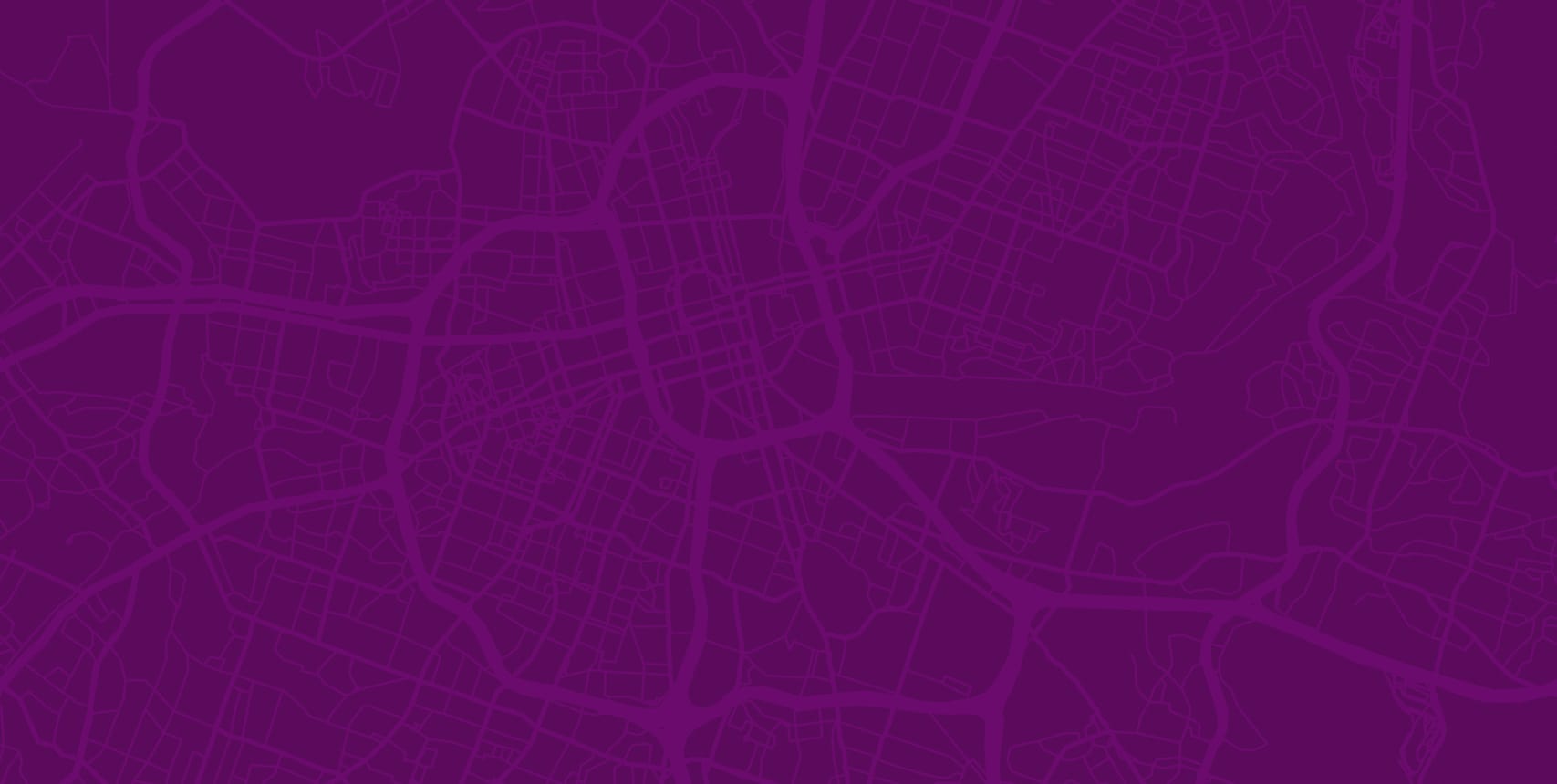 Pink, peach, purple, orange, and red graphics depicting aerial view street maps, hillshade maps, topography, and color waves.