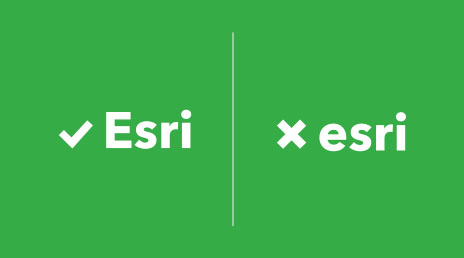 The correct spelling of the company name is Esri. Other spellings and acronyms are not valid.