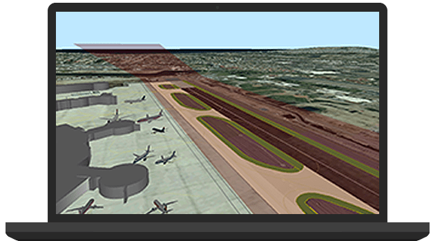 Visualize your airport assets such as signage and markings and your obstacle analysis results in two and three dimensions.