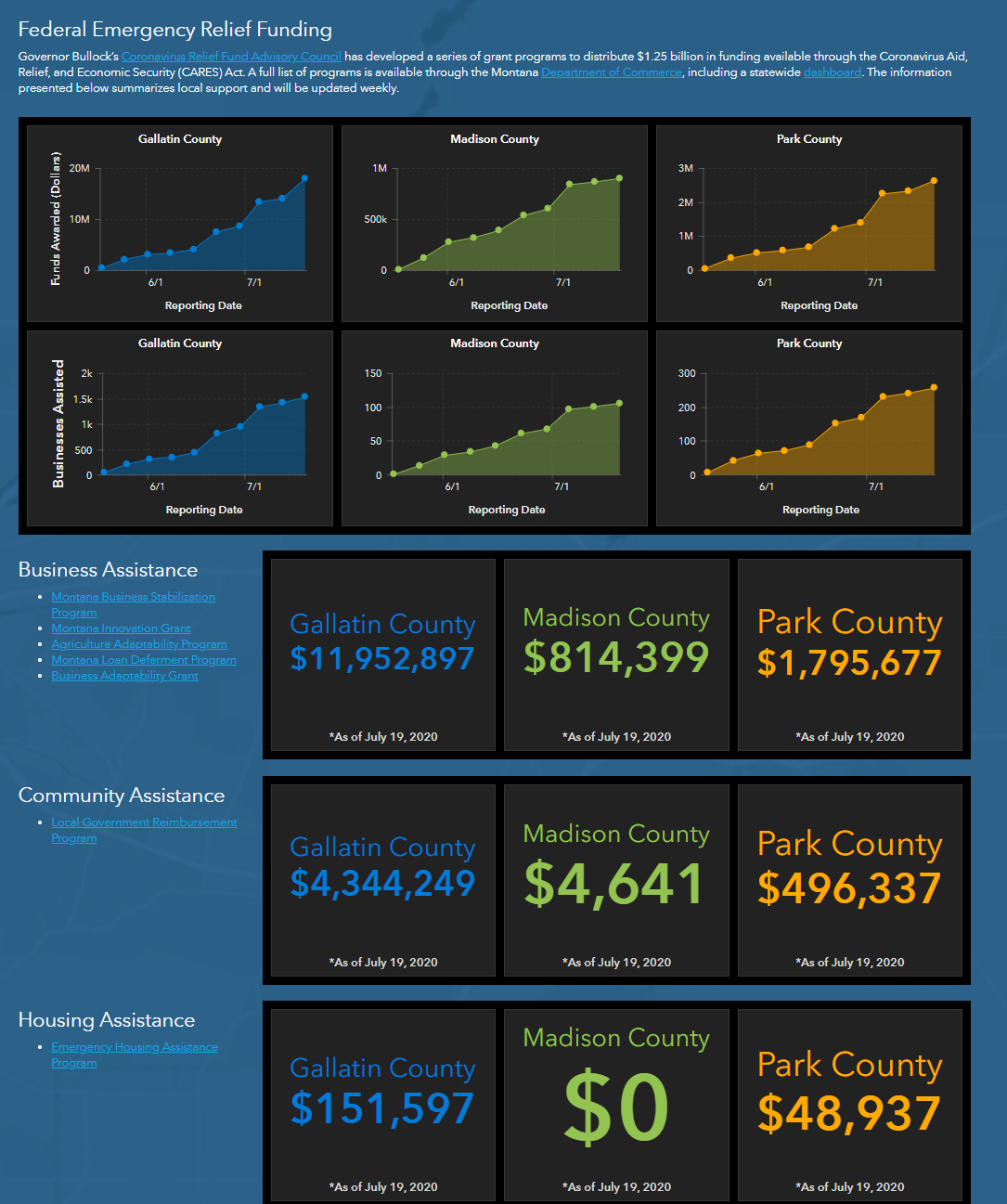Finally, it’s no secret that COVID-19 is the story of the year so far. Cities, counties and states are frantically focusing on business recovery as this pandemic continues going forward. The city of Bozeman, MT provides a Hub page for its citizens to see how and where recovery funds are being used for businesses, communities, and housing assistance. In each of these sections are links to apply for assistance or get more information about these programs. Again…a two-way street for citizens and their government.