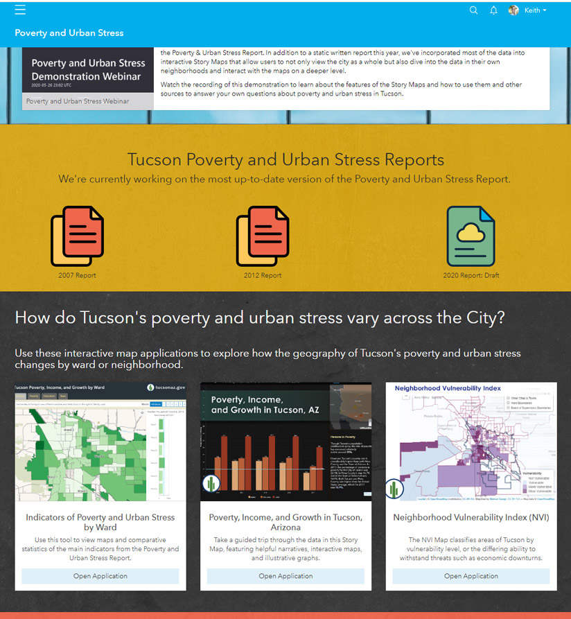 The city of Tucson, AZ uses ArcGIS Hub to communicate a timely and important initiative to its citizens: Poverty and Urban Stress. Using web maps, detailed reports and infographics, the city is able to communicate to all its citizens about poverty in the city, where its occurring, and the city’s plans to remediate this.