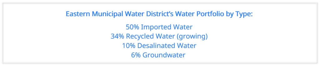 Based in Perris, California, Eastern Municipal Water District (EMWD) is the sixth-largest public water utility in the state. Its team of 600+ employees serves nearly one million accounts with water, wastewater, and recycled water across 682 square miles in western Riverside and northern San Diego counties.