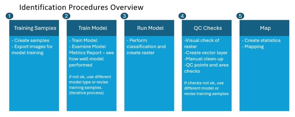 Our steps for identifying Arundo in imagery using deep learning are outlined below: