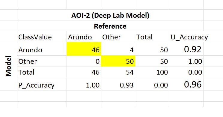 In terms of the amount of Arundo detected in the watershed, it is also worth noting that many past Arundo removal projects have estimated the amount of Arundo removed as the area cleared of Arundo rather than the actual amount of Arundo plant removed. So sometimes the amount of Arundo in an area could be exaggerated.