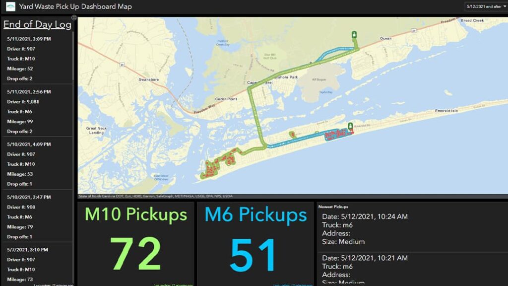 The Emerald Isle, North Carolina Public Works Department uses GIS technology to manage yard debris collection. The town’s public works department tracks the location of yard waste trucks in real time, allowing residents to see when their debris will be picked up. “Now, we not only can perform annual and seasonal analyses, but we can also give our residents visibility into how hard we work, along with real-time updates, and make decisions based on data. It’s a win-win for everyone,” according to Public Works Director Artie Dunn.