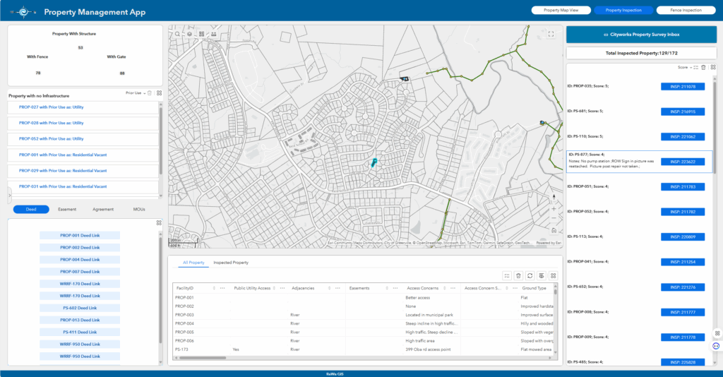 “ReWa’s GIS-based property inventory and management application gives leaders a clear, up-to-date view of all properties, making it easier to manage maintenance, plan for the future, and make informed investment decisions. By bringing together environmental, operational, and inspection data, it helps guide smart, practical choices that benefit both the organization and the community.” –Julie Dacus, Director of Business Services, Renewable Water Resources (ReWa)