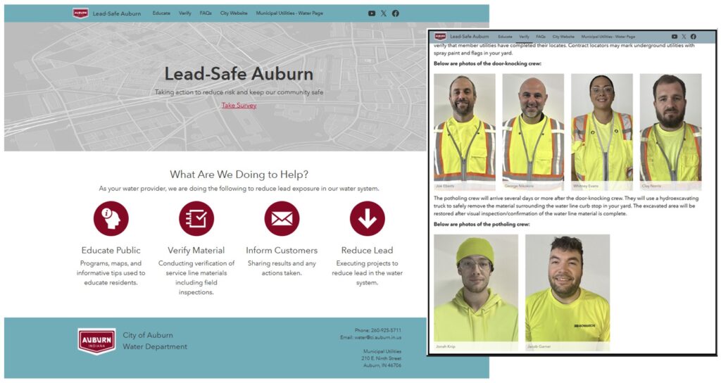 Along with project transparency, the hub site provides educational resources about lead service lines, answers to FAQs, and a survey that allows residents to submit information about their own service line materials.