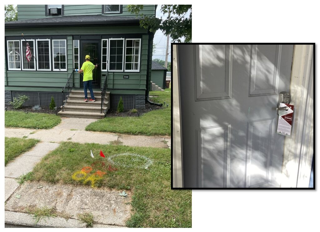 Abonmarche field crews then followed suit, verifying the completed markings and updating the inventory points using Field Maps. Crews would then deliver the door hanger to each property owner and attach a photo record to the GIS point to facilitate continuous tracking of the workflow process and signify to the vacuum truck operators that the property was clear for digging.
