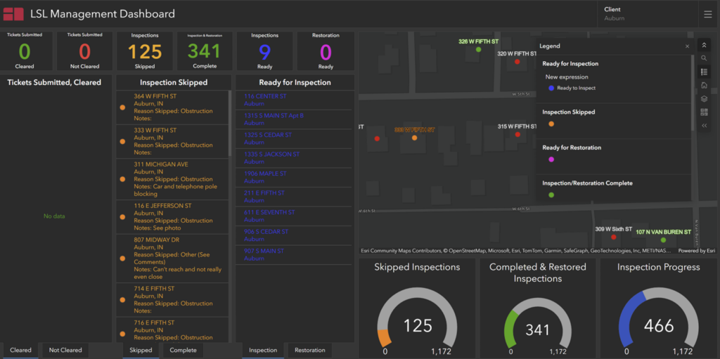 The GIS tracked work tickets (which had been created by calls to 811), scheduled digs, restoration, and updates to the live LSL data. Project managers, vacuum truck operators, and field technicians worked in unison—thanks to a host of GIS applications, including live dashboards, ArcGIS Field Maps, and the city’s hub site—to complete this effort.