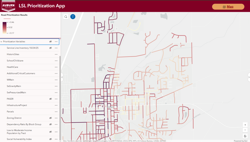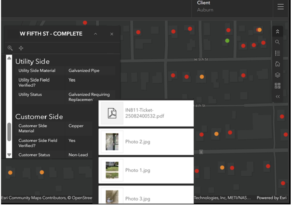 Seeing the benefit of geographic information system (GIS) solutions, Auburn devoted 2025 to performing hydroexcavation (potholing) to validate service line materials in the field. The city partnered with Abonmarche to develop a comprehensive GIS-based construction management solution using the ArcGIS Online platform to track 341 potholes, from site selection through final restoration.