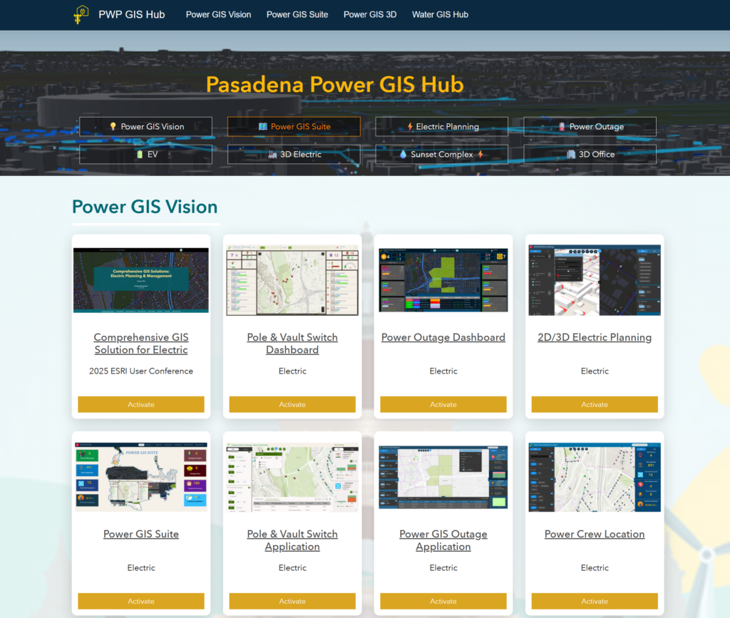 The Power GIS Hub serves as both a public-facing and internal gateway to Power GIS Vision. It provides an interactive platform for the public, internal teams, and cross-organizational partners to explore active projects, proposed plans, infrastructure data, and historical records related to Pasadena Power.