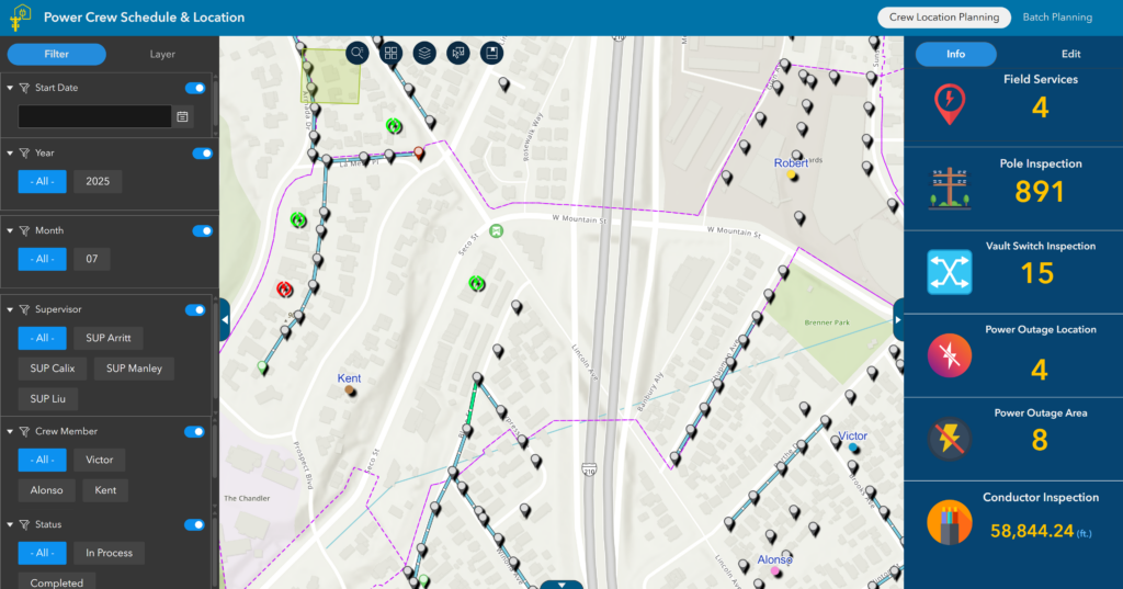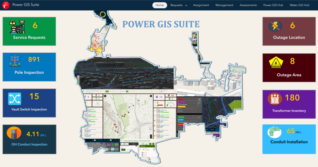 Power GIS Vision has evolved into a comprehensive GIS environment powered by modern ArcGIS technologies. By unifying these tools, engineers, planners, supervisors, and field crews can review and update projects, track inspections, monitor outages, manage assignments, analyze asset performance, and coordinate community response within a single GIS platform.