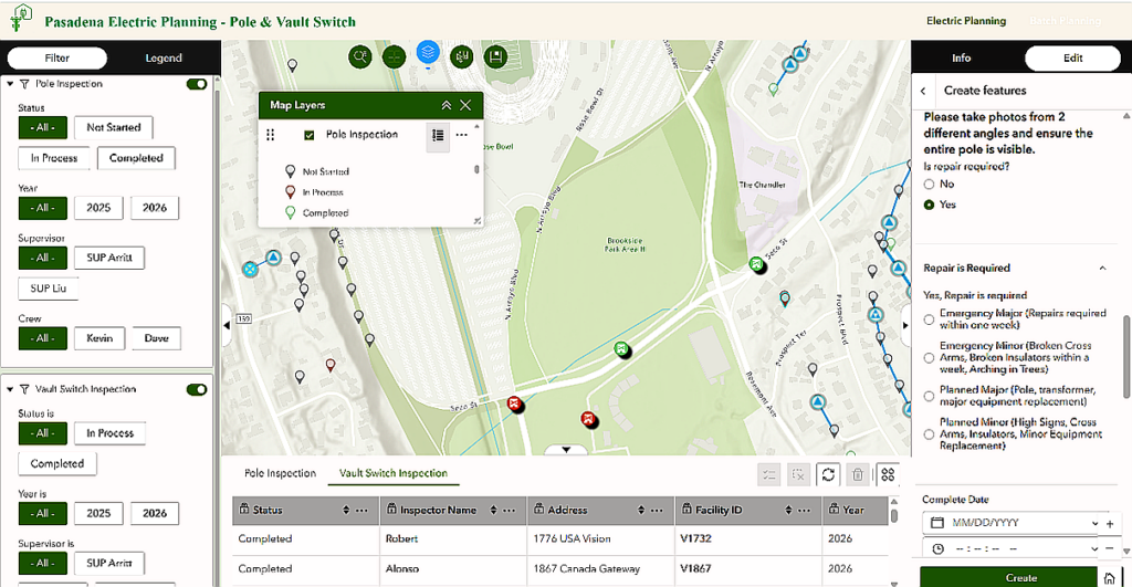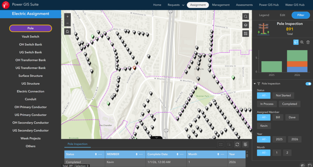 - Electric Planning and Inspection Management – The first major focus area was inspections, including poles, vault switches, and transformers.