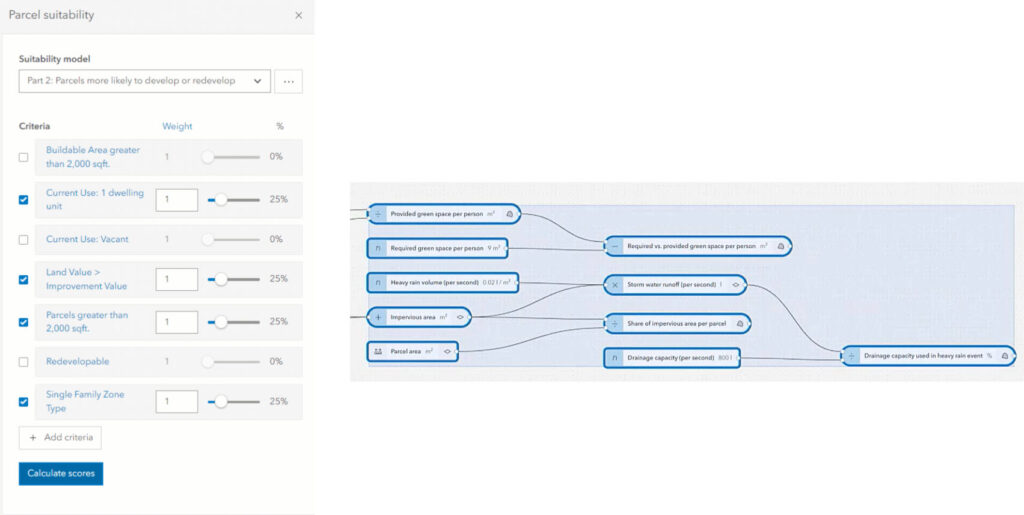 Performing parcel suitability analysis and modeling the impacts of impervious surfaces of a data center in ArcGIS Urban