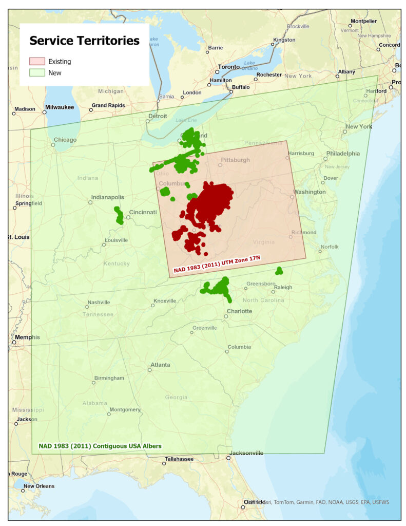 Hope’s original GIS environment consisted of a single Esri utility network focused exclusively on West Virginia. This system relied on localized spatial references and workflows tailored to one region, making it incompatible with new territories. As the company expanded, several critical issues emerged. The existing database could not accommodate additional assets or future acquisitions, creating a bottleneck for growth. Spatial references varied across regions, leading to inconsistencies and integration hurdles. The schema lacked provisions for the seamless migration of newly integrated gas networks, requiring significant manual effort to incorporate new assets. Field operations faced their own set of challenges. Crews relied on gMobile™ for Windows, which supported only offline access within West Virginia. New crews from acquisitions had no mobile GIS access, limiting their ability to work efficiently in the field. These limitations threatened operational efficiency, data accuracy, and the ability to scale for future growth. Hope needed a solution that would consolidate its GIS data, standard.