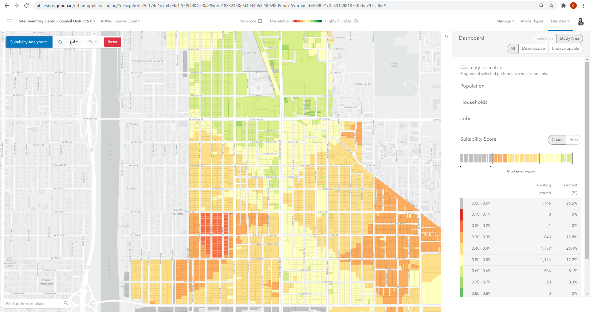 Taking a data-driven approach to site suitability, planners can develop multiple housing scenarios in neighborhoods and measure their potential effectiveness. Policy makers can then evaluate and visualize these scenarios, collaborate with community leaders, and engage the public to meet their expectations for transparency and accountability.