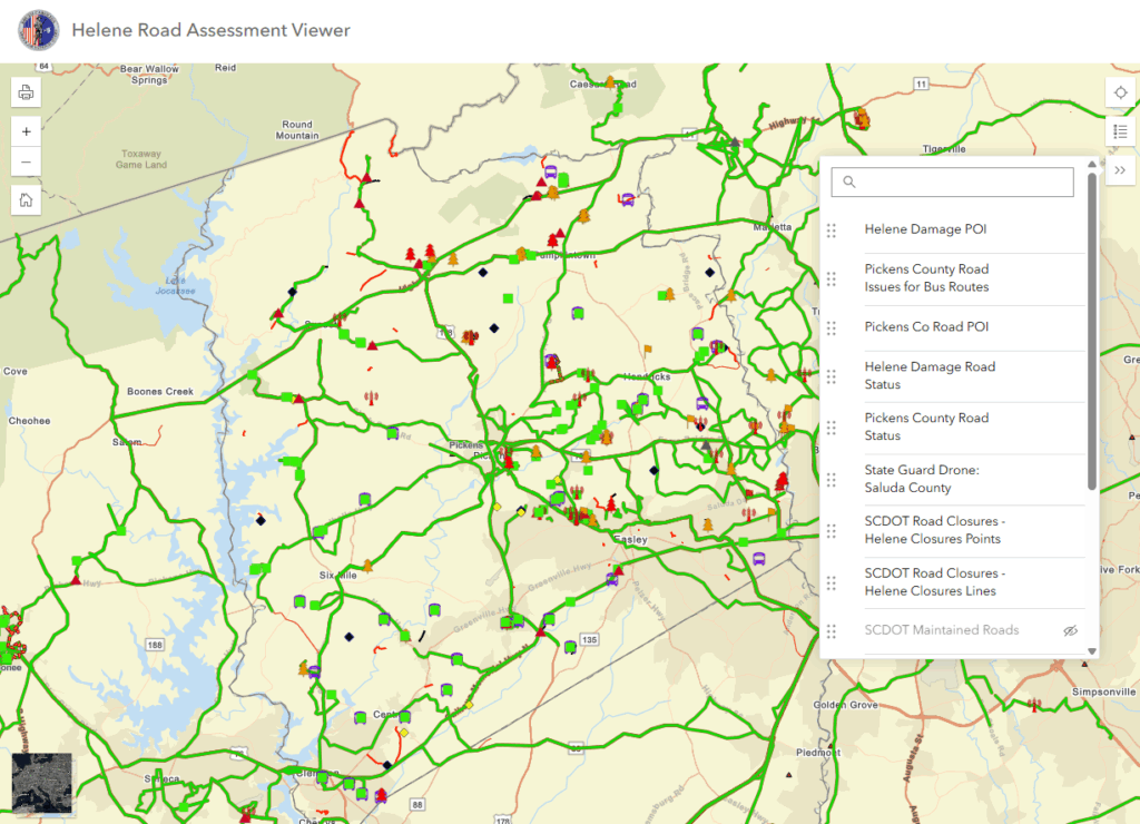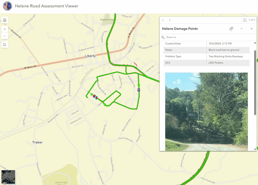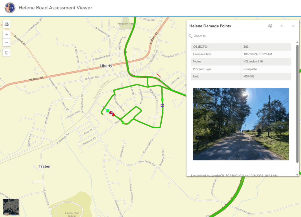Following Hurricane Helene, GIS was invaluable in the Upstate of South Carolina; its use allowed seamless data sharing between SCNG and county Emergency Operations Centers (EOCs).