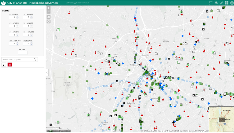 The city of Charlotte took what I believe to be a very repeatable approach to affordable housing. Their Housing Location Policy was designed to distribute affordable housing investments into more affluent communities, in order to limit the concentration of poverty within distressed neighborhoods. They used GIS to create site scoring for proposed locations based on proximity to transit assets and amenities, income diversity, reasonable access to jobs, and level of neighborhood change. The city’s housing operations manager and data analytics team did all of this using web-based tools in ArcGIS.