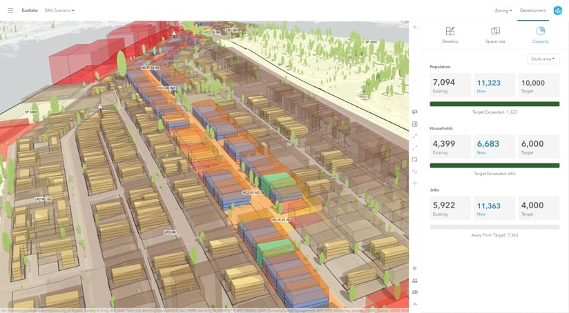 The city of Seattle has been using GIS for years, and recently used some advanced web-based tools to manage their dramatic growth (fastest growth in the U.S. since 2010). They used GIS to inventory housing and employment capacity, gain a growing understanding of changing demographics, and to design affordable housing evenly through its many neighborhoods.