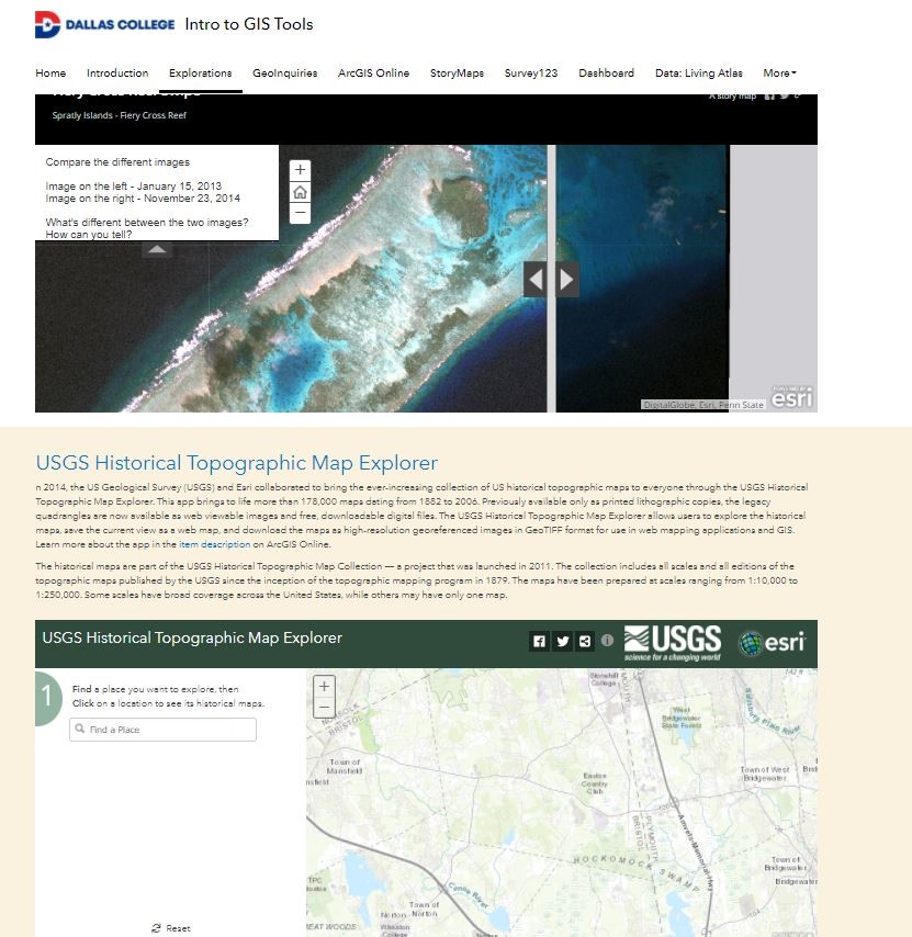 This educational initiative shows the power of ArcGIS Hub to serve as a one-stop resource. The Dallas College hub site contains videos, learning objectives, lessons, two surveys (powered by ArcGIS Survey123) for learners to take before and after they work through the lessons, and more. In addition, the hub site supports the embedding of maps and apps such as dashboards, interactive maps, and custom apps from the ArcGIS Living Atlas of the World. The Esri education team has worked with Dallas College for many years, particularly the Brookhaven Campus’s geospatial degree and certificate programs, supporting the rigorous use of GIS in teaching and learning through site-visit advisement and online sessions. The team listens to progress and challenges and tells others about their innovations.
