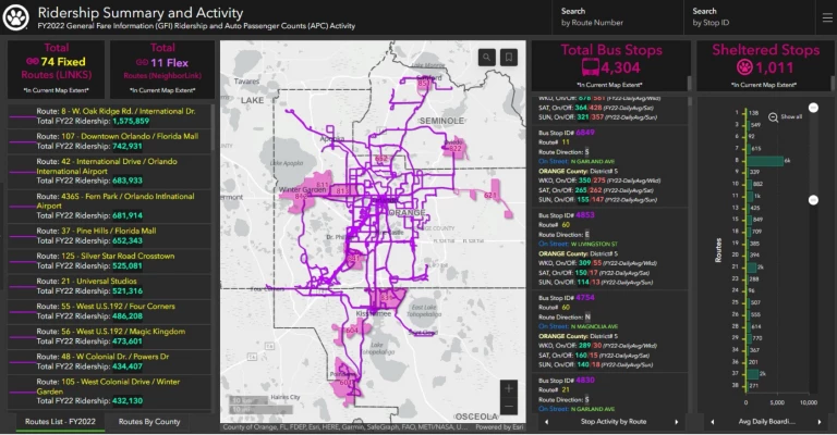 A: GIS helps us optimize routes, allocate resources better, and monitor service performance in real time. By analyzing travel patterns and ridership data, we can design routes that reduce travel times and costs for our riders and take them where they want to go. With real-time data integration, we can respond quickly to service disruptions, enhancing reliability and boosting customer satisfaction. All these efficiencies create a transit system that’s not just more responsive, but also more resilient.