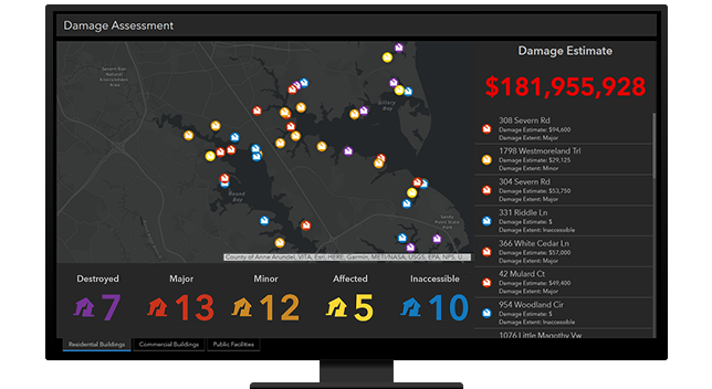 Maps and imagery provide the essential base for understanding the aftermath of disaster. Overlay these with data collected from the field to create informative dashboards, quickly analyze impact, and assess needs.