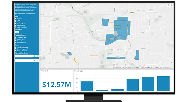Mapping land and infrastructure sets the foundation for recording authoritative information, spatial analysis, modeling, and network analysis. Maps allow staff to layer related information and show spatial relationships between parcels, rights-of-way, streets, and utilities. Buildings can be mapped in the same way to support your workflows.
