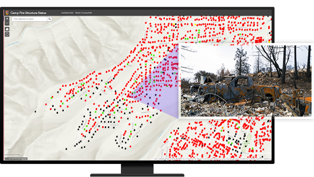 After a wildland fire, it's important for firefighters, government leaders, utility company staff, and others to assess the extent of the damage. Using mobile devices to collect data and pictures of destroyed residences, infrastructure, and associated debris, staff can map, inventory, and communicate damage in real time.