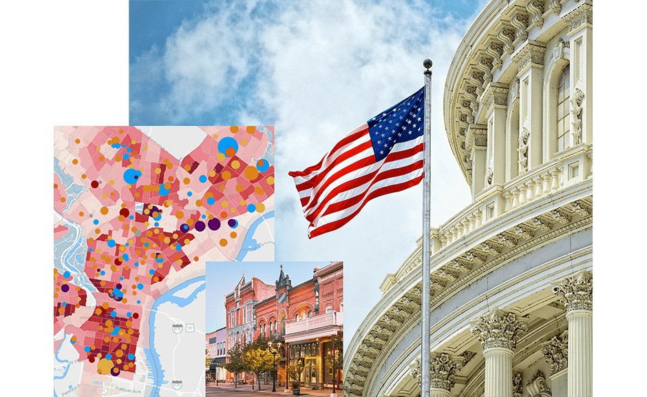 Esri provides hundreds of ready-to-use, focused maps and apps that meet the goals of the federal stimulus programs. Reduce the time it takes to deploy geoenabled solutions in your organization and start improving your community's health, economy, infrastructure, emergency response, and access to housing and broadband.