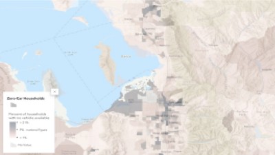 The Origin/Destination Map uses licensed location-based services data (aka big data) to convey travel connections made across the Wasatch Front urban region. Users can click individual districts and see the percentages of vehicles traveling to others. Data can be seen in time segments ranging from the annual down to individual times of day, filtered for specific seasons and months.